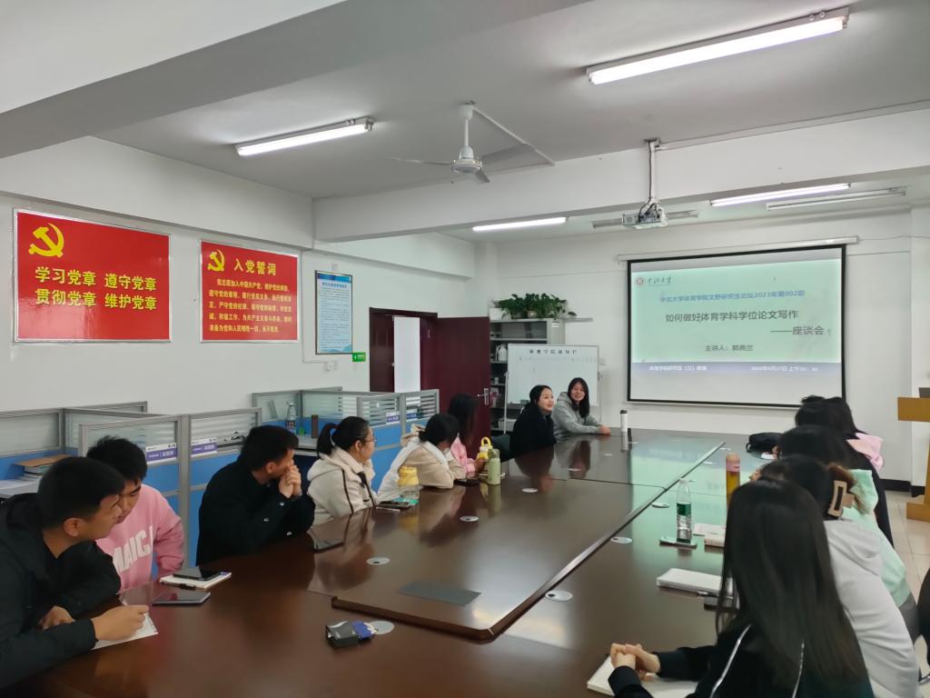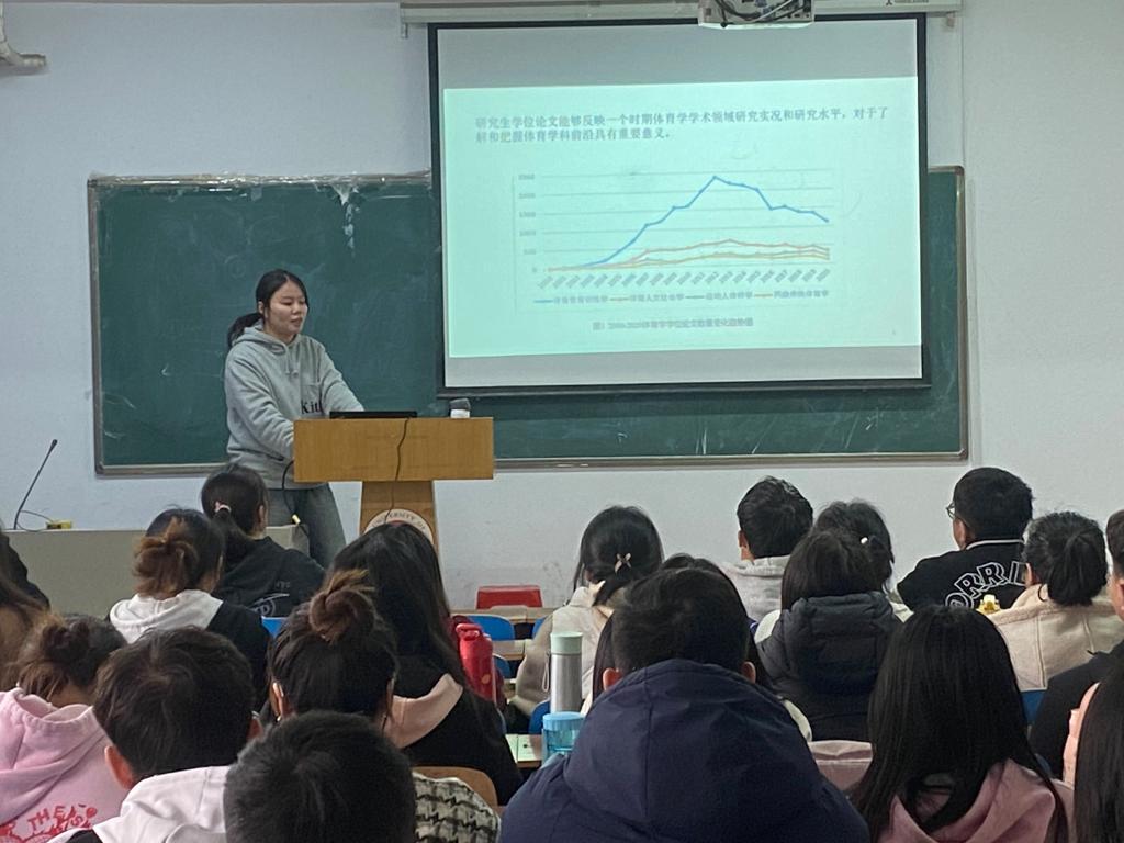 4月27日下午,开云online(中国)2023年第002期“文野”研究生论坛在我院一楼多媒体教室顺利举行。本次论坛邀请了开云网页版页面2019届毕业生、山西大学在读博士生郭燕兰主讲,主题为《如何做好体育学科学位论文写作》。本次论坛由开云online(中国)牛会康老师主持,我院全体研究生参加。