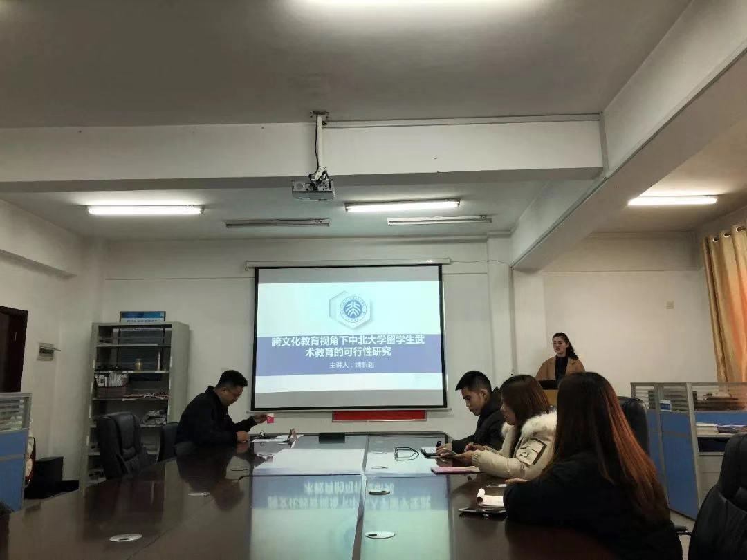 本期学术沙龙主题为“跨文化教育视角下中北大学留学生武术教育的可行性研究”。主讲人靖新超的研究以中北大学为个案,运用教育学、民族传统体育学、跨文化教育学等相关学科的理论与方法,分析诊断开设留学生武术课程存在的困境,确立留学生武术教学的目标,建立留学生武术教学课程体系。旨在为来华留学生教育提供参考,为中国武术的国际传播与发展提供一定的借鉴。面向一带一路推进我国高等教育国际化发展的大背景下,跨文化教育的核心价值是接受并欣赏文化差异;各种文化均有其特性,应相互尊重、相互学习开展来华留学生武术教学不仅留学生身心发展的主观需求,也是中国文化国际传播的客观需要;不仅提高了留学生跨文化适应能力,也为中国武术传播奠定人才基础。参会同学就跨文化背景下的留学生武术教育展开了热烈的讨论。