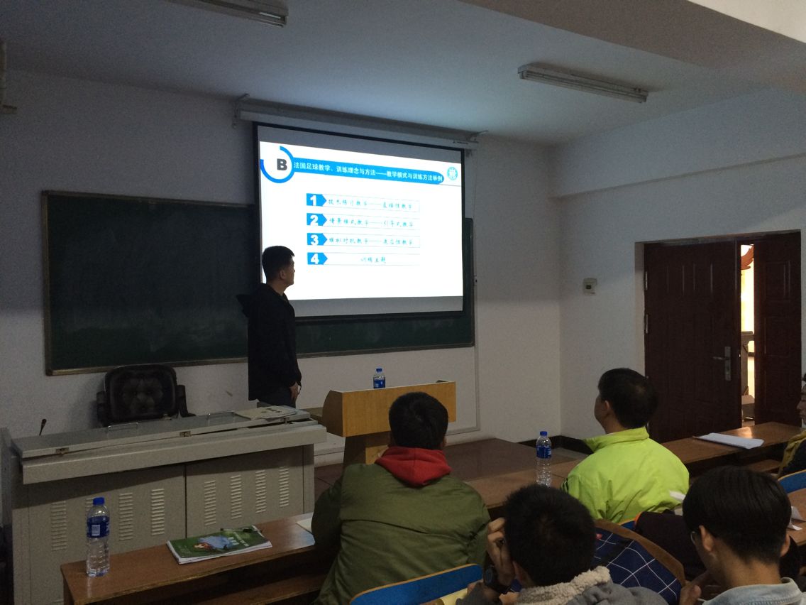 3月16日,开云online(中国)足球教研室组织教学研讨活动,彭晋涛老师作为我国首批赴法留学的校园足球教练员,在此次活动中向在座师生介绍了赴法留学的项目背景,总结讲解了法国足球教学和训练理念,以及在法留学期间的一些见闻体会,参与活动的师生一同讨论了中法足球运动认识上的本质差异,并通过具体案例讨论比较了中法足球教学方法和训练理念,通过此次教学研讨活动,使大家了解了我国在足球运动领域中与法国存在的不同,更清楚的认识到了我国与世界足球先进水平所存在的差距,共同为我国校园足球活动的健康长远发展献计献策!