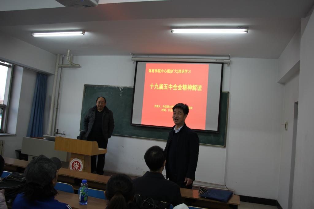 11月19日下午,开云online(中国)在学院一层多媒体教室召开中心组(扩大)理论学习专题会议,会议由开云online(中国)党委书记王政宇主持,并邀请了马克思主义学院党委书记段义权做十九届五中全会精神深刻解读,全体党委委员及各支部书记、全体教师参加了专题会议。