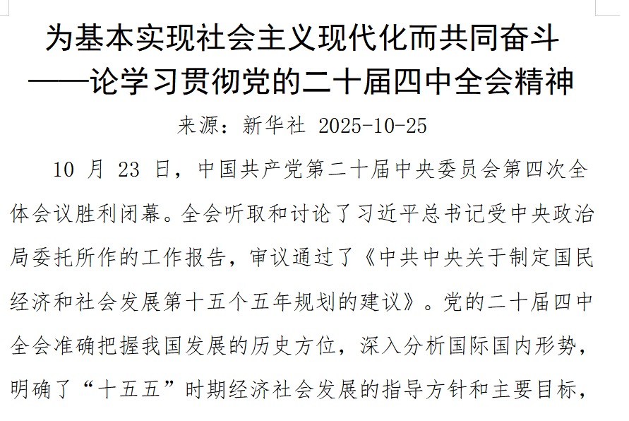 研究生党支部第二党小组于11月29日在腾讯会议平台线上针对《为基本实现社会主义现代化而共同奋斗——论学习贯彻党的二十届四中全会精神》进行学习。