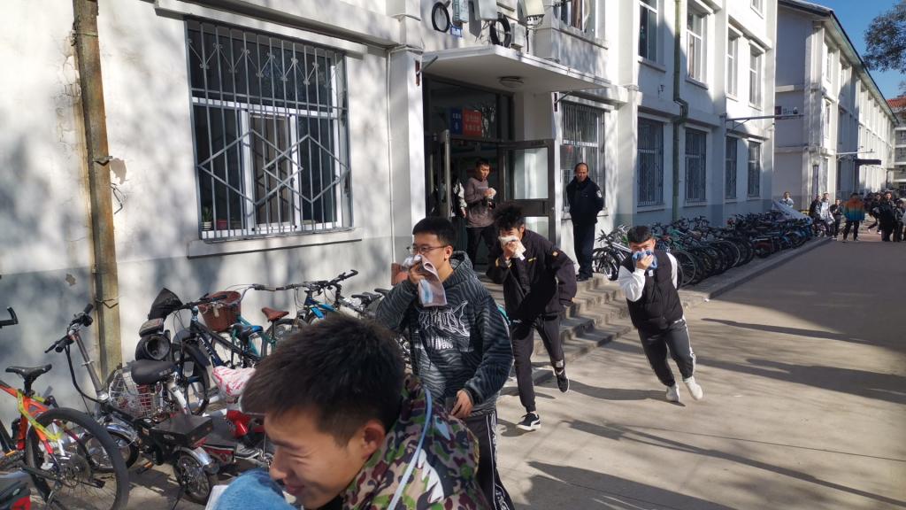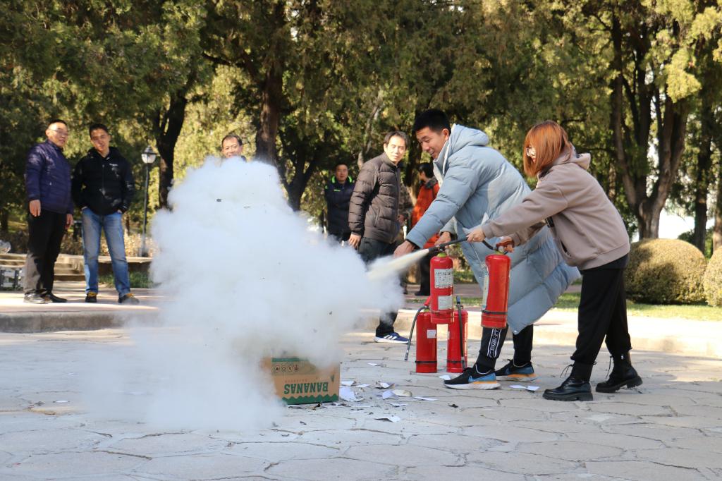 中午12点30分,工作人员释放烟雾弹,随着各楼层安全员吹响紧急疏散哨,工作人员按照消防演练方案到达指定岗位,迅速组织文瀛6号楼学生按照消防处置程序进行自身防范,沿着指定路线快速、有序地撤离到安全地带。集合后,向老师讲解了消防常识和火灾逃生中的要点,并现场演示了灭火器的操作程序,指导师生正确掌握使用灭火器的方法,并由学生操作实践。最后,贾书记对本次演练做了点评,指出了演练中存在问题,希望同学们认识到演习即实战,平时要时刻留意周边环境,提高紧迫感、临危不乱,正确应用所学的知识技能。