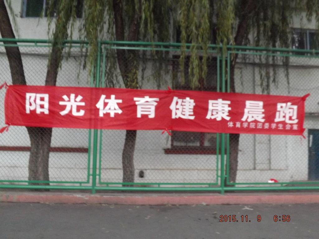 2015119日在我院各系老师的亲切关怀下,由学生会负责人王老师带领学生会各部门成员悉心组织安排了阳光体育,健康晨跑早操活动。目的是为鼓励大一新生以崭新的面貌开启大学生活。