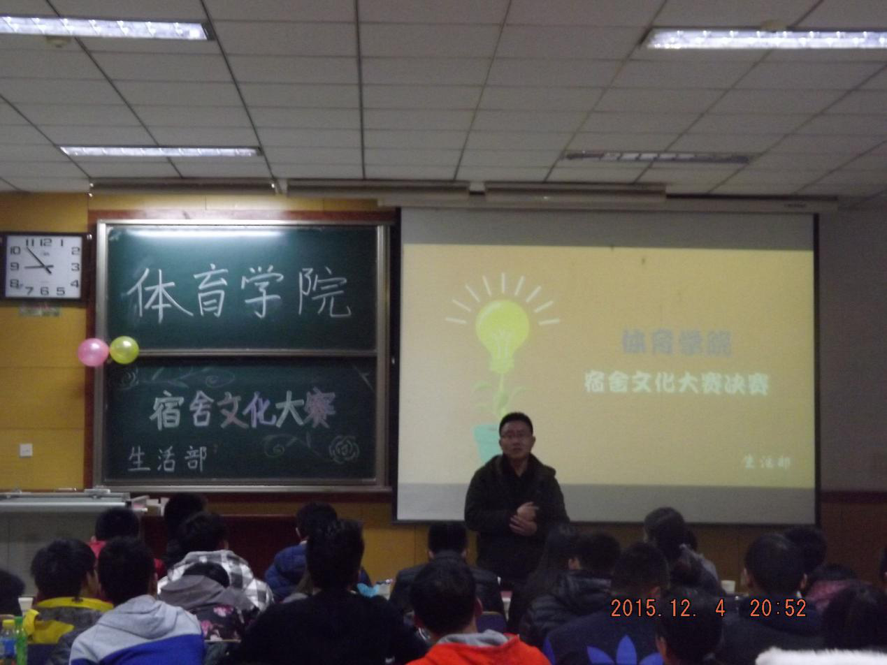 2015年12月4日晚七点,我院在九号楼09101教室举办了“开云online(中国)宿舍文化大赛”。出席本次活动的人员包括学院学生科科长李士荣老师,团委书记唐伟老师,辅导员王华慧老师,及学生会主席团全体成员和15级全体学生。