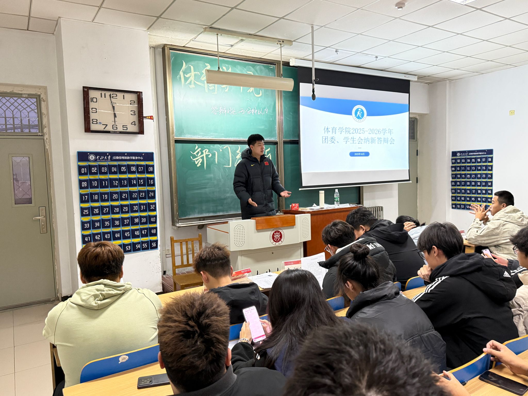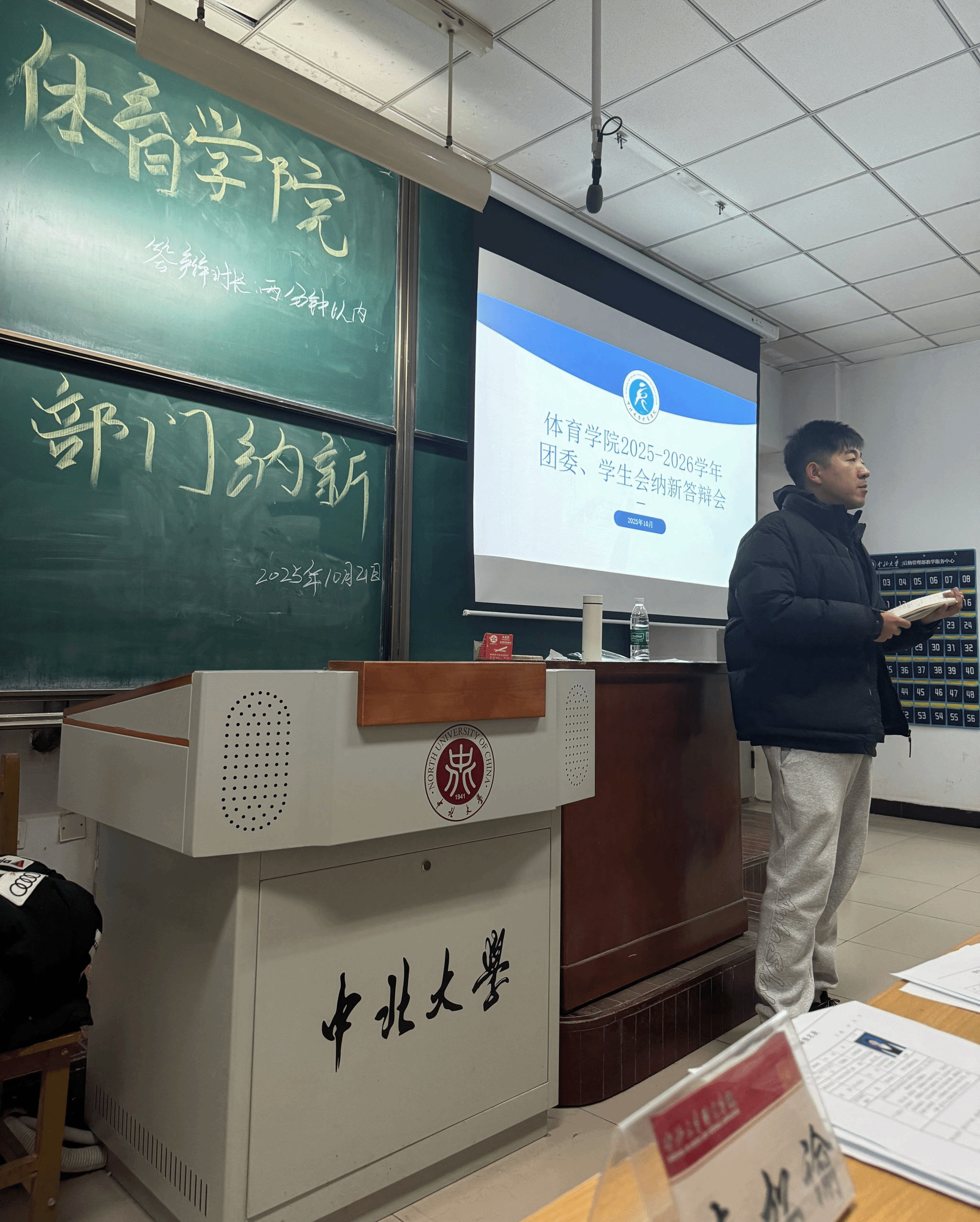 为选拔优秀学生骨干,为学院团委、学生会注入新鲜血液,10月21日下午,育学院2025-2026学年团委学生会纳新答辩会在11502H教室顺利召开。学生科李佳怿老师出席会议,学生会主席韩金鑫及全体团委学生会部长担任评委,60余名怀揣热情的2025级新生参与,尽显体育学子投身学生工作的高涨积极性。