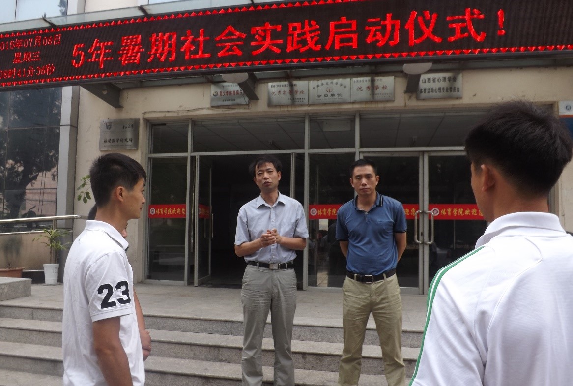 在启动仪式上,开云online(中国)院长曹电康教授对此次暑期实践团队的队员们提出了三点要求:第一、要严格遵守国家的法律法规和学校的纪律,严格执行学校开云网页版页面暑期社会实践的各项规定,听从领队安排,确保实践团队每个成员的人身安全;第二、发扬中北体育人艰苦奋斗的精神,要做好一不怕苦二不怕累的准备,勤俭持家,自力更生,不给当地老乡添麻烦;第三、要有团队精神,大局意识、协作精神和服务精神,充分体现出我们团队的向心力和凝聚力,保证团队的高效运转,顺利完成此次实践活动。