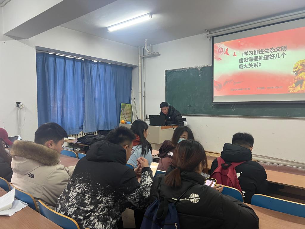 研究生党支部第二党小组于12月21日在开云online(中国)一楼多媒体教室针对《推进生态文明建设需要处理好几个重大关系》进行学习。