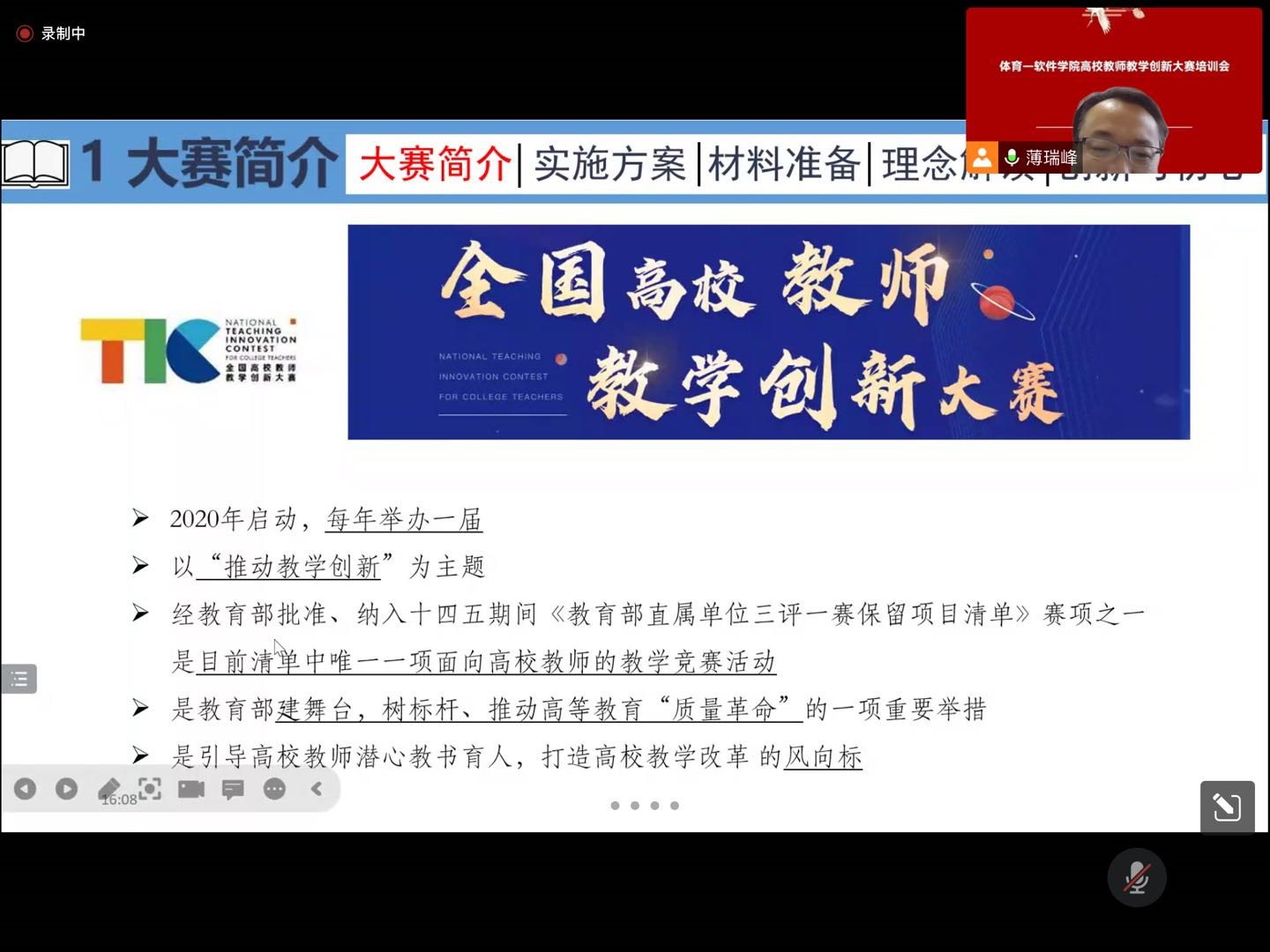 薄瑞峰教授结合本人的参赛经验,从大赛简介、实施方案、材料准备、理念解读、创新与初心等方面展开阐述。并就老师们关心的问题进行了深度交流。