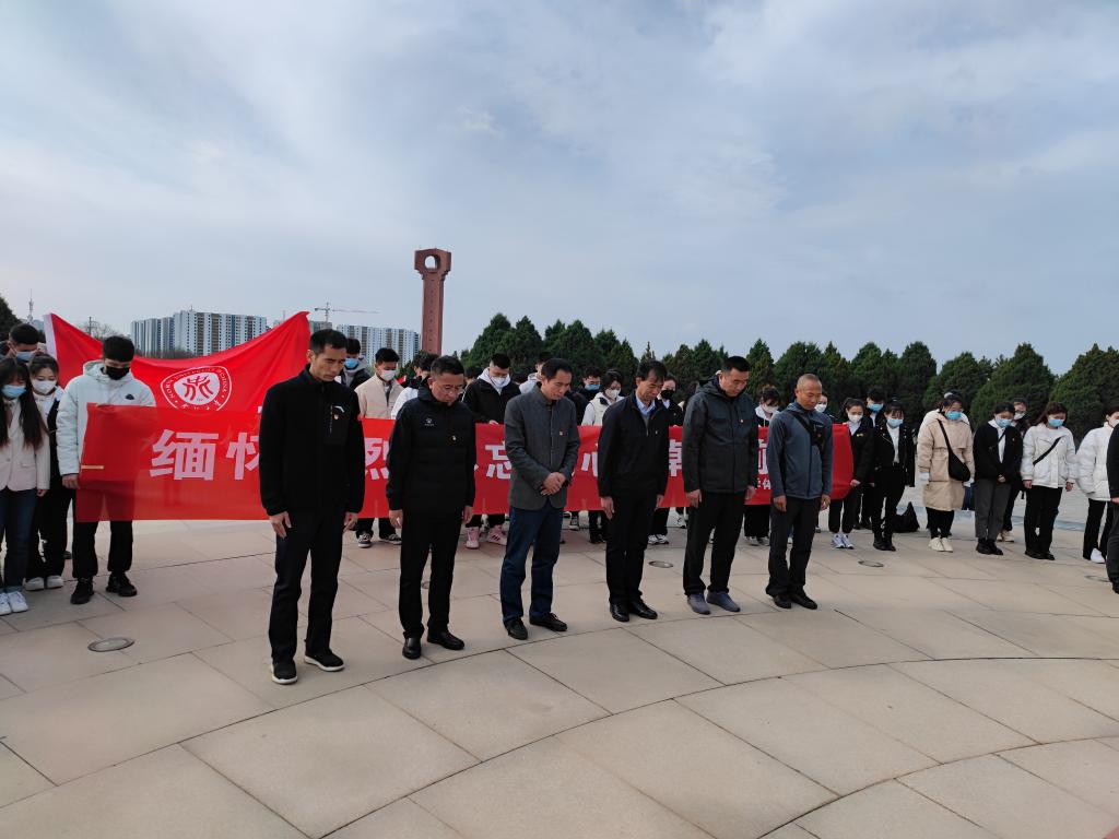 4月5日清晨,开云online(中国)党委组织师生党员,前往牛驼寨烈士陵园,开展“缅怀先烈,不忘初心,踔厉前行”为主题的清明祭扫活动。开云online(中国)党委书记兼院长曹电康、党委副书记贾鹏,及80余名师生党员参加本次活动。