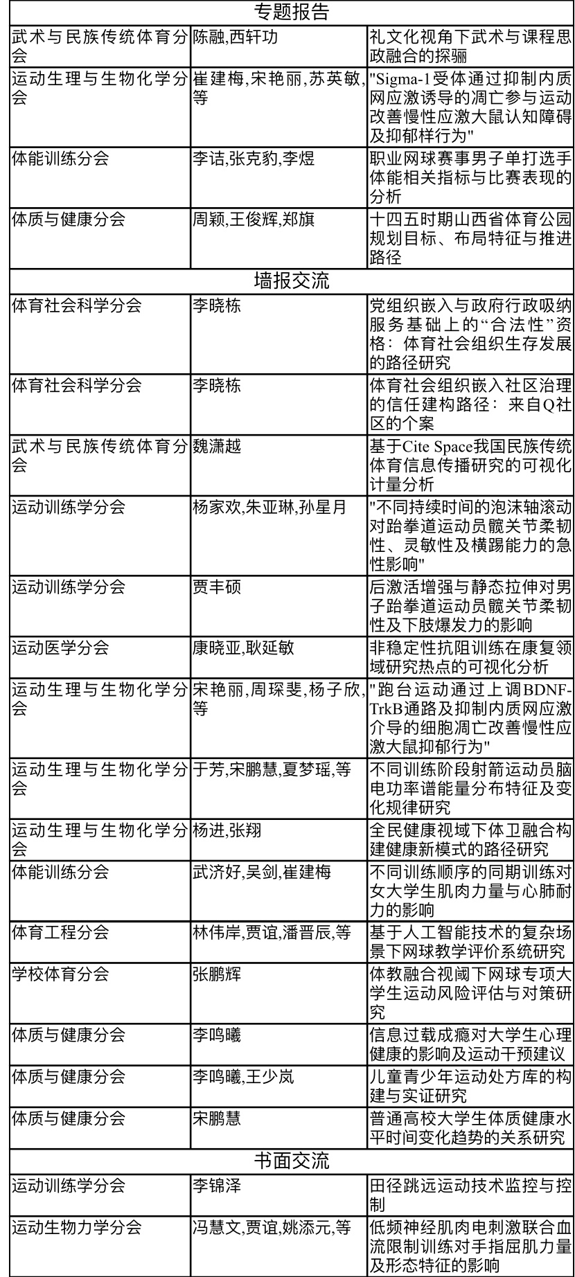 2023年8月31日,中国体育科学学会公布了第十三届全国体育科学大会论文录取结果,开云online(中国)共计21篇论文入围,录用论文涉及武术与民族传统体育、运动生理与生物化学、体能训练、体质与健康等分会板块。其中,专题报告4篇,墙报交流15篇,书面交流2篇。
