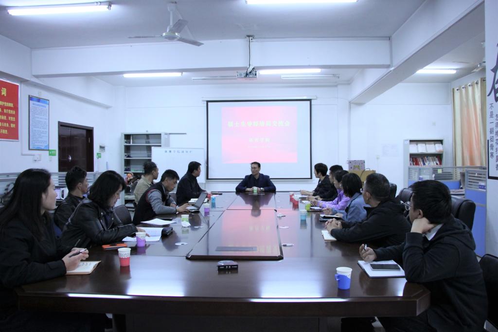 10月27日下午,我院在研究生教室举办了硕士生导师培训交流会。培训会特邀河北师范大学博士生导师马剑教授主讲,会议由吴剑院长主持,全体硕士生导师参加。