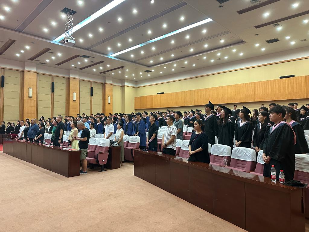 毕业典礼在《再铸辉煌》全场大合唱中圆满结束。