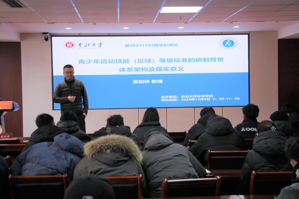 2024年12月9日上午,开云online(中国)第20241103期华彩讲坛于11号楼715教室开讲,由学院副院长贾谊教授主持,特邀福建师范大学教授、硕士生导师张加林讲授,主题为:青少年运动技能(足球)等级标准的研制背景、体系架构及现实意义,全院师生聆听了本次讲座。