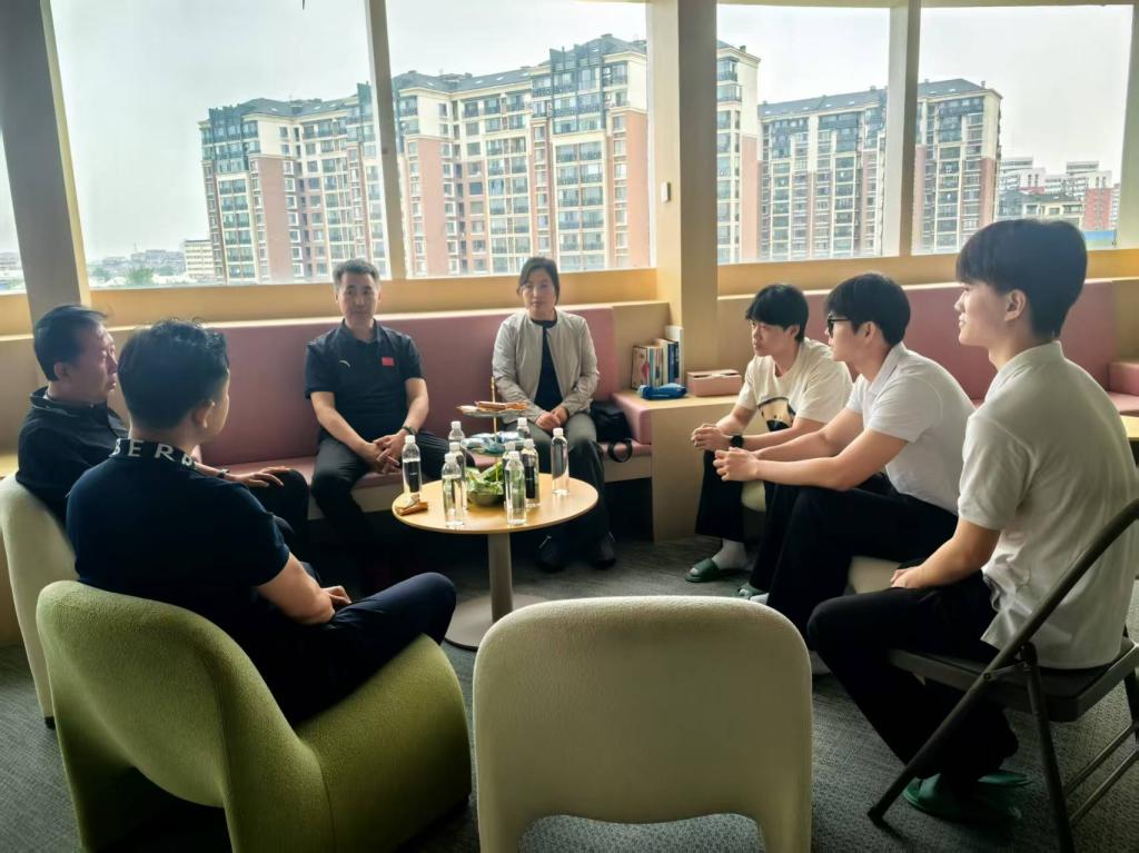 吴院长、贾谊副院长实地观摩了实习生的工作环境岗位和实践内容,并与实习生亲切交流。座谈会上,实习生依次汇报了实习期间的收获与体会,表示通过参与体育教学、健身指导、体育经营等一线工作,专业技能和专业素养得到显著提升。