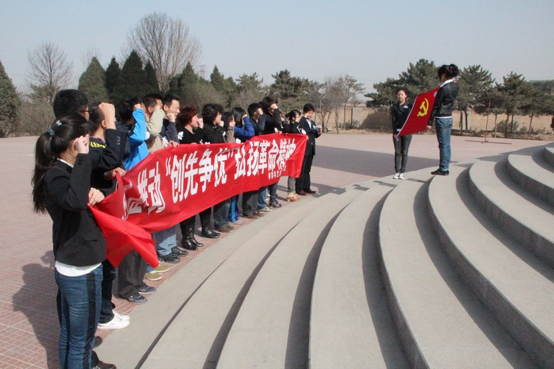扫墓开始,王琳书记和曹凤才副书记向人民英雄们敬献花篮,随后由曹书记带领,全体党员在革命英雄纪念碑前举行了宣誓仪式,学生代表梅志夫也做了发言,最后王书记做了重要讲话,她要求大家:要牢记使命,从现在开始,从一点一滴做起,继承爱国传统,做中华民族伟大复兴事业的开拓者;要树立正确的世界观、人生观、价值观,坚定理想信念,增强责任感和使命感,坚持培育和弘扬民族精神。扫墓仪式结束后,全体党员一起参观了牛陀寨太原解放纪念馆,瞻仰革命先烈英雄事迹。
