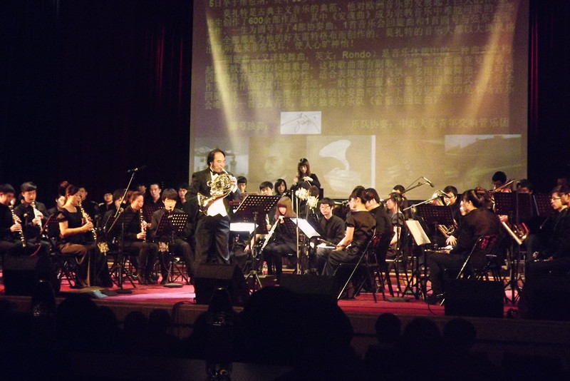 为了使中北大学多样性校园文化发扬光大,并与我校音乐教学资源紧密结合,使高雅音乐在中北日渐生根发芽,4月12日由体育与艺术学院和校团委共同主办的“中北大学音乐普及与教育活动年”启动仪式暨“中外管乐作品讲解音乐会”在科艺苑隆重举行。这场别开生面的“讲解音乐会”,由音乐系李斌老师讲解,中北大学青年交响管乐团担任演奏,是把课堂解说形式搬上了舞台的课堂式讲解演出,使在场的所有师生沉浸在音乐欣赏的海洋,真正领略到了一场非常贴近观众内心的高贵而雅俗共赏的音乐会。