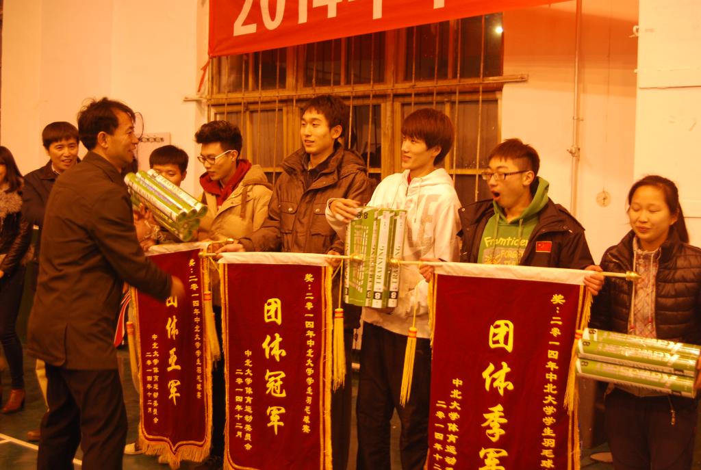 中北大学2014年学生羽毛球赛,经过十三天紧张激烈的比赛,于12月10日圆满结束。本次比赛共14个学院的代表队参加,进行了26场比赛。最终,化工与环境学院夺得比赛冠军,信息与通信工程学院获得亚军,开云online(中国)获得第三名,软件学院获得精神文明奖。