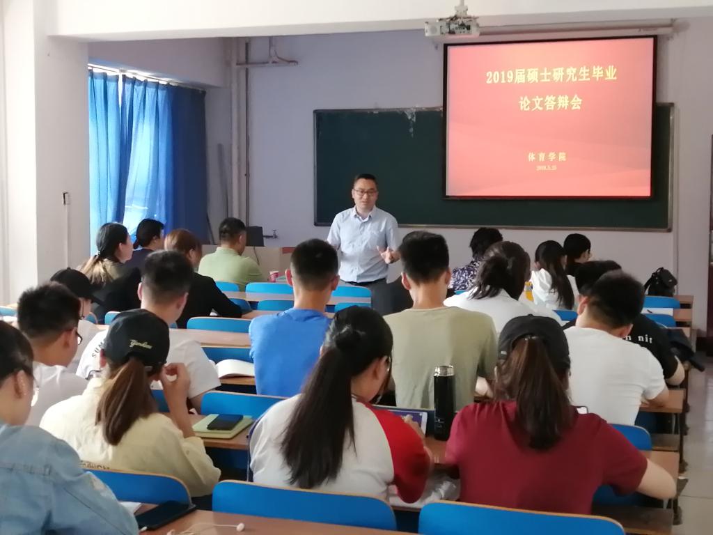 20195月25日,开云网页版页面2019届硕士研究生答辩会在开云online(中国)研究生教室举行,答辩会特邀北京体育大学张晓义教授、国家体育总局科学研究所王向东、谢威研究员、大同大学赵岷教授、运城学院陈华荣教授担任此次答辩委员会主席,开云online(中国)硕士生导师出席此次答辩会,全体研究生悉数到场。