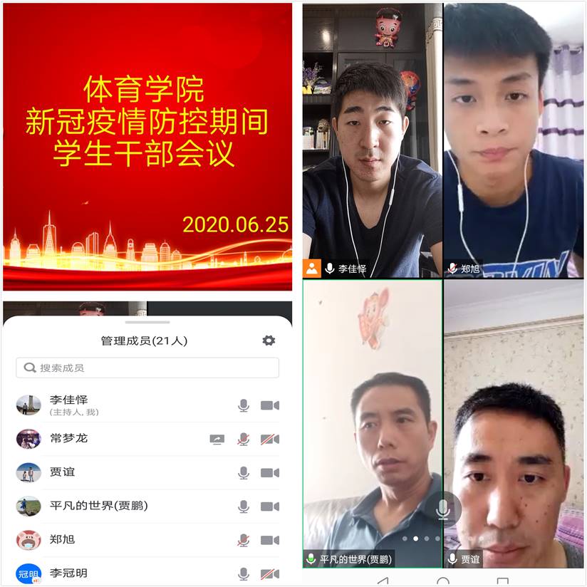 2020625日上午,召开疫情期间学生干部线上会议,会议由李佳怿主持,院党委副书记贾鹏、全体辅导员班主任、各班班长团支书参会。会议中,李老师对学生干部进行了培训,详细讲解了新冠疫情防控期间的各项工作,各班主任对相关工作做了安排。最后,贾书记强调,在当前疫情防控形势下,学生干部政治立场要坚定,注意工作的方式方法,要重点关注同学们的安全问题,有任何情况及时向班主任反馈,会后及时将会议精神传达给每一位同学。