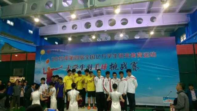10月17日至18日,2015年第四届全国亿万学生阳光体育运动大学生羽毛球挑战赛在我校成功举行。比赛由中国大学生体育协会羽毛球分会主办,我校承办。来自全国18所高校的150名余名运动员与60名专业的裁判员参加。