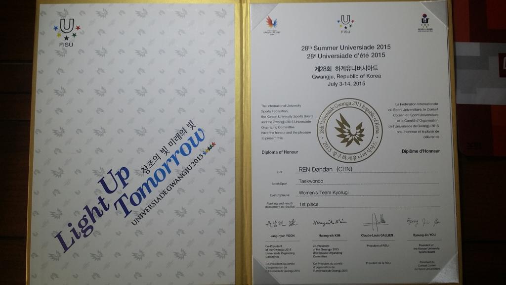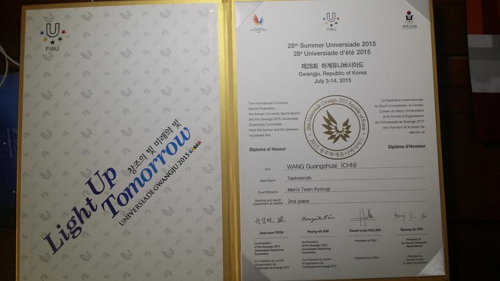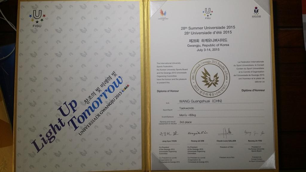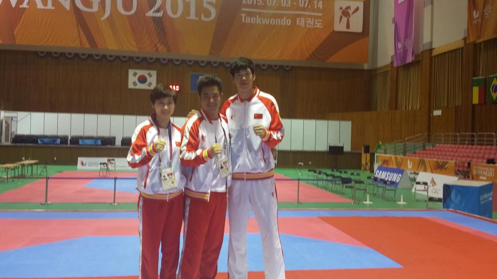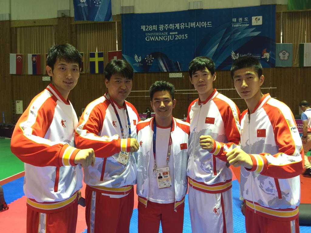 在刚刚闭幕的第二十八届世界大学生夏季运动会上,我校学子捷报频传:我校开云online(中国)教师窦永涛,学生王广帅、任丹丹代表中国第一次参加世界大学生运动会跆拳道项目,先后夺得女子团体赛冠军、男子团体赛亚军、男子80公斤级季军(王广帅),使五星红旗三次在韩国光州冉冉升起,为国争得了荣光。本次比赛的规模和水平都创造了世界大学生运动会跆拳道比赛的历史。由于明年是奥运会,各国选手为争夺奥运积分,纷纷派出了最强选手,均为世界排名靠前的选手,比赛异常激烈。