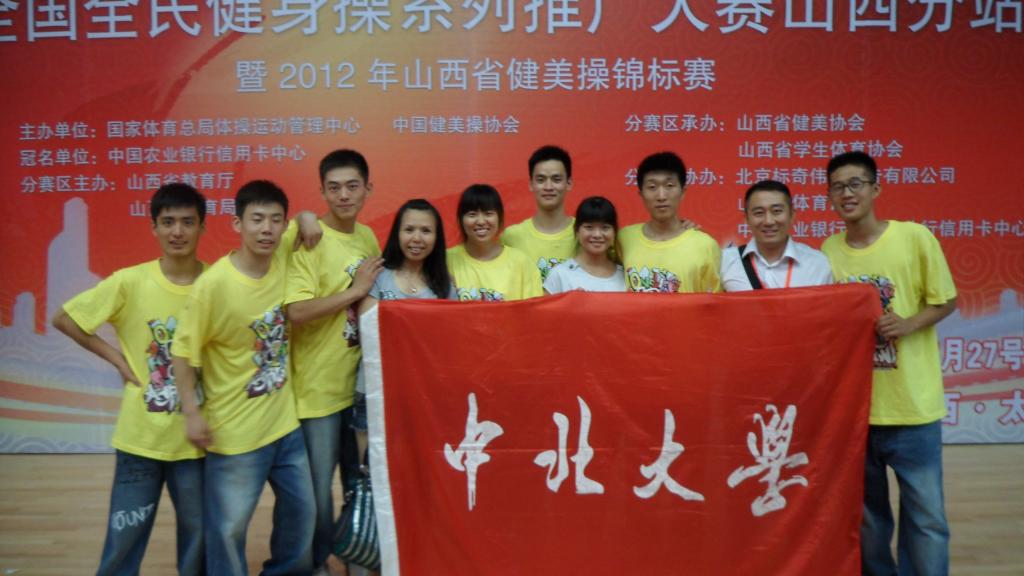 中北大学健美操队在教练员刘美云老师、赵明哲老师的带领下,经过暑期刻苦的训练,于2012年7月27日至29日参加了山西省教育厅、山西省体育局主办的山西省健美操锦标赛。在比赛中中北大学健美操队面对众多对手表现出色,在嘻哈舞、六级操比赛中均获得一等奖;在青年徒手套、四级、五级操比赛中获得二等奖的佳绩,为我校争得荣誉。