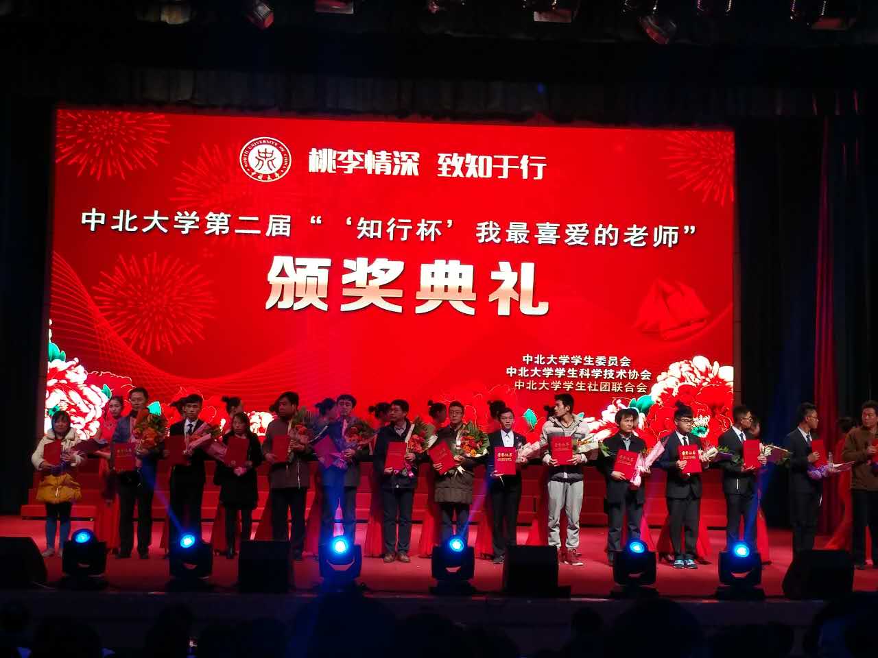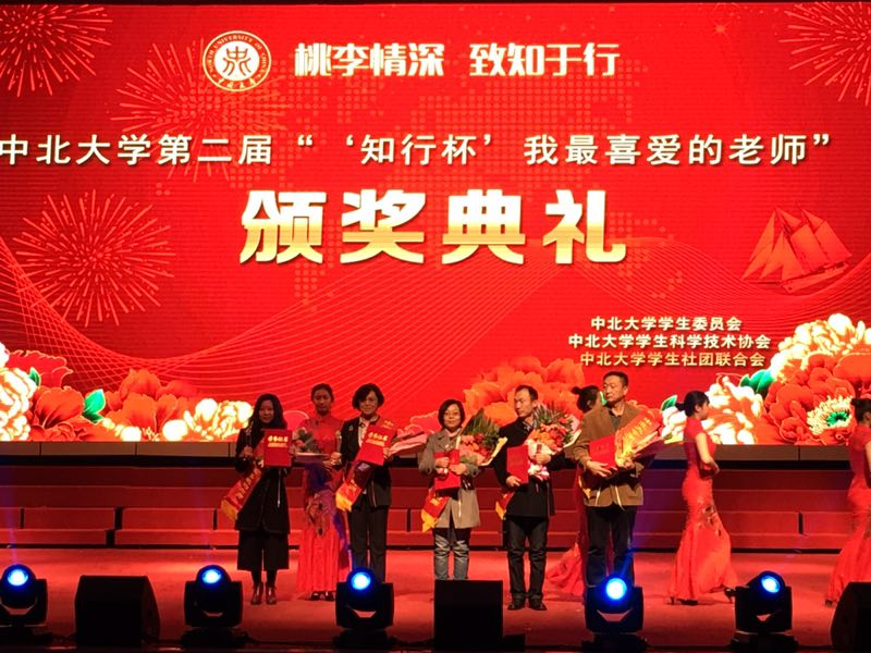 12月23日下午,我校千余名师生齐聚科艺苑,隆重举行我校第二届“‘知行杯’我最喜爱的老师”颁奖盛典。我院于芳老师荣获中北大学第二届“‘知行杯’我最喜爱的老师”荣誉称号;李纲老师荣获中北大学第二届“‘知行杯’我最喜爱的老师”提名奖的荣誉。校党委副书记薛智、校纪委书记王瑞芬、副校长雷锋斌、副校长潘晋孝出席典礼并为获奖教师颁奖。全校各职能处室负责人,各学院党委书记、副书记、教师代表参加了典礼。