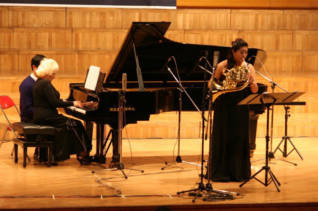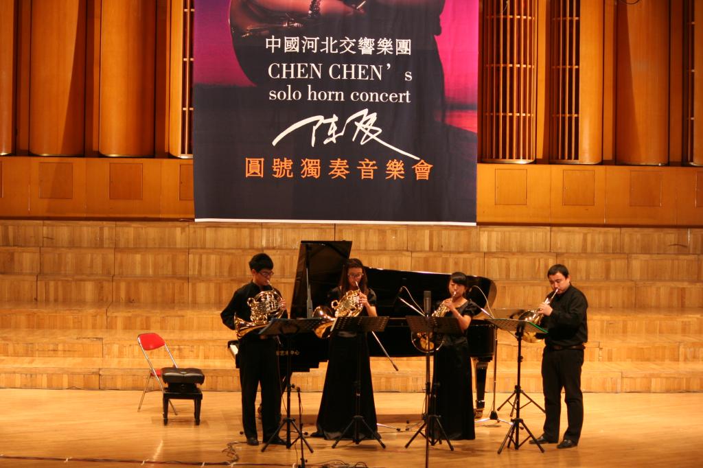 音乐会首先以一首“BAGATELL”(音乐会小品)展现出来,较全面体现了演奏者上下贯通扎实的基本功底。无伴奏圆号独奏“圣歌”则是以现代作曲技法,运用圆号宽广的音域,反差的力度对比,似乎是人与神在对话以及人在神面前祈祷的一幕。继而刘红军的中国作品“景颇短曲”,佛朗兹•施特劳斯的“夜曲”,莫扎特第二圆号协奏曲1、2、3乐章,结束了上半场演出;下半场首先是前苏联作曲家格里埃尔的声乐协奏曲第一乐章,为使音乐会锦上添花,与陈辰出自同门的中北大学音乐系在校生插演了圆号四重奏“魔笛序曲”,使观众耳目一新。紧接着一首理查•施特劳斯的第一圆号协奏曲1、2、3乐章结束了全场演出。在观众的热烈掌声中,陈辰与恩师李斌教授加演了一曲F大调奏鸣曲圆号教学二重奏选段和柴可夫斯基第五交响曲第二乐章片段。