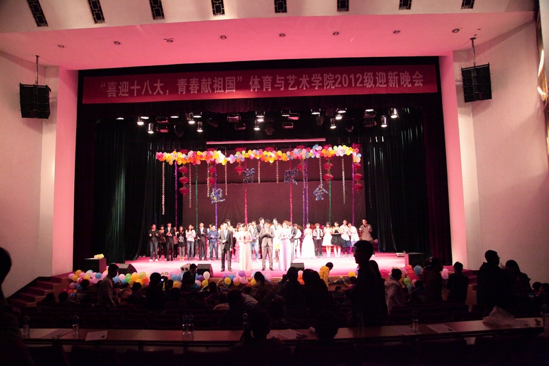 11月3日晚7:30,寒潮绕道去,热情洋溢来!在这寒风瑟瑟的11月里中北大学体育与艺术学院2012级迎新晚会在我校科艺苑隆重举行。出席晚会的领导有校团委书记叶玉刚,体育与艺术学院党总支书记王琳,副书记曹凤才,学生科科长贾鹏,院团委书记田维飞等。首先党总支书记王琳在晚会开幕式上致辞,并宣布“2012年体育与艺术学院迎新晚会”正式开始,晚会在一片欢呼声中拉开帷幕