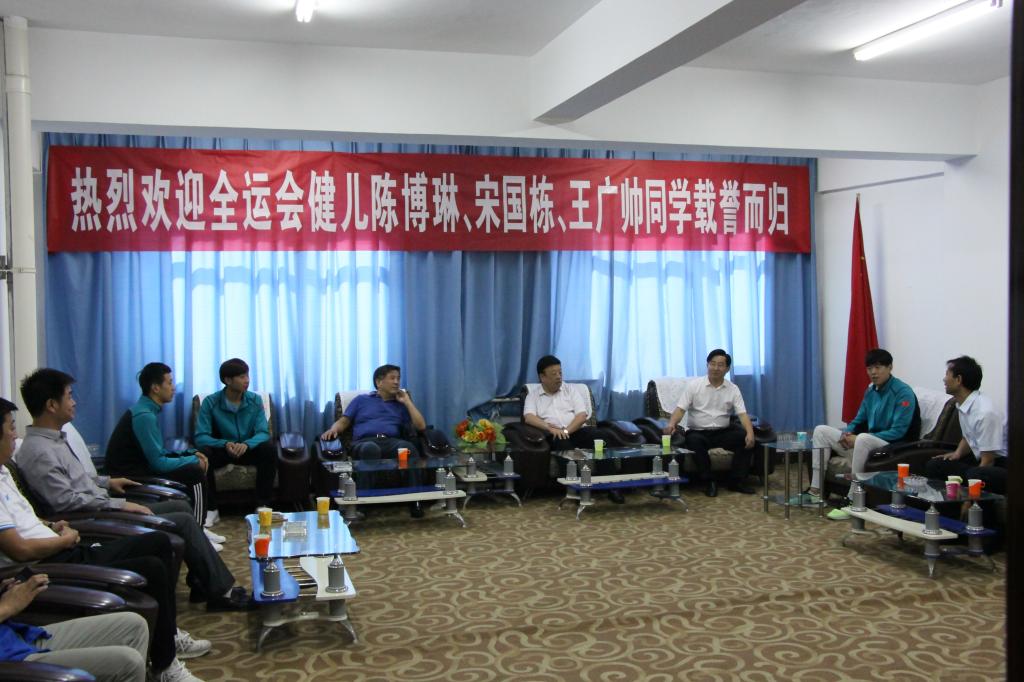 副校长曾建潮、白培康分别对运动员表示祝贺,并与开云online(中国)相关人员一同探讨学院相关工作发展,要求学院借此机会加快学科发展、营造全校热爱体育运动的浓厚氛围。